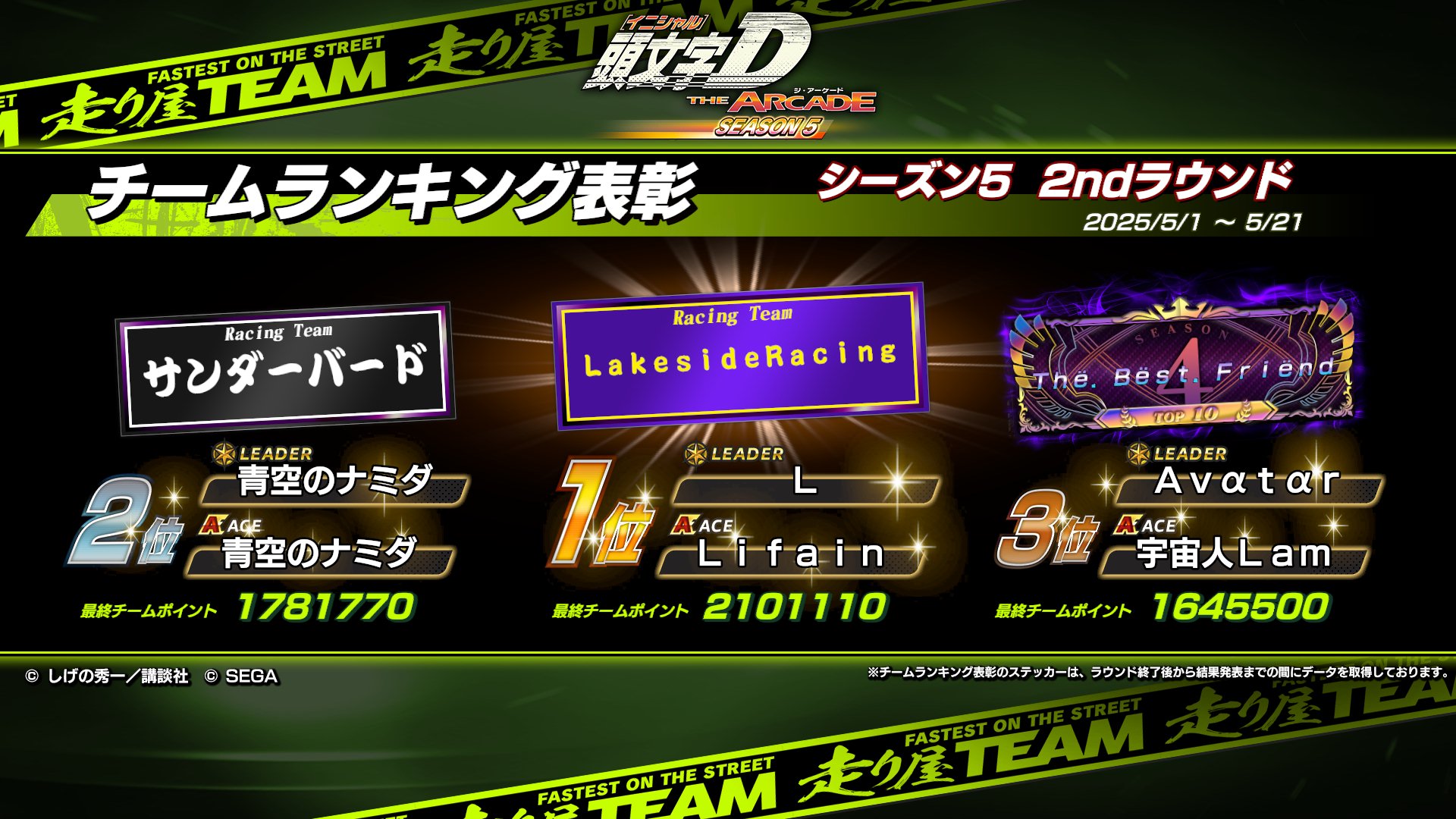 ※ラウンド表彰のチームステッカーは、ラウンド終了後から表彰発表までの間にデータを取得しております