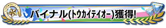 ![]() ![]() 称号:バイナル(トウカイテイオー)獲得 |
