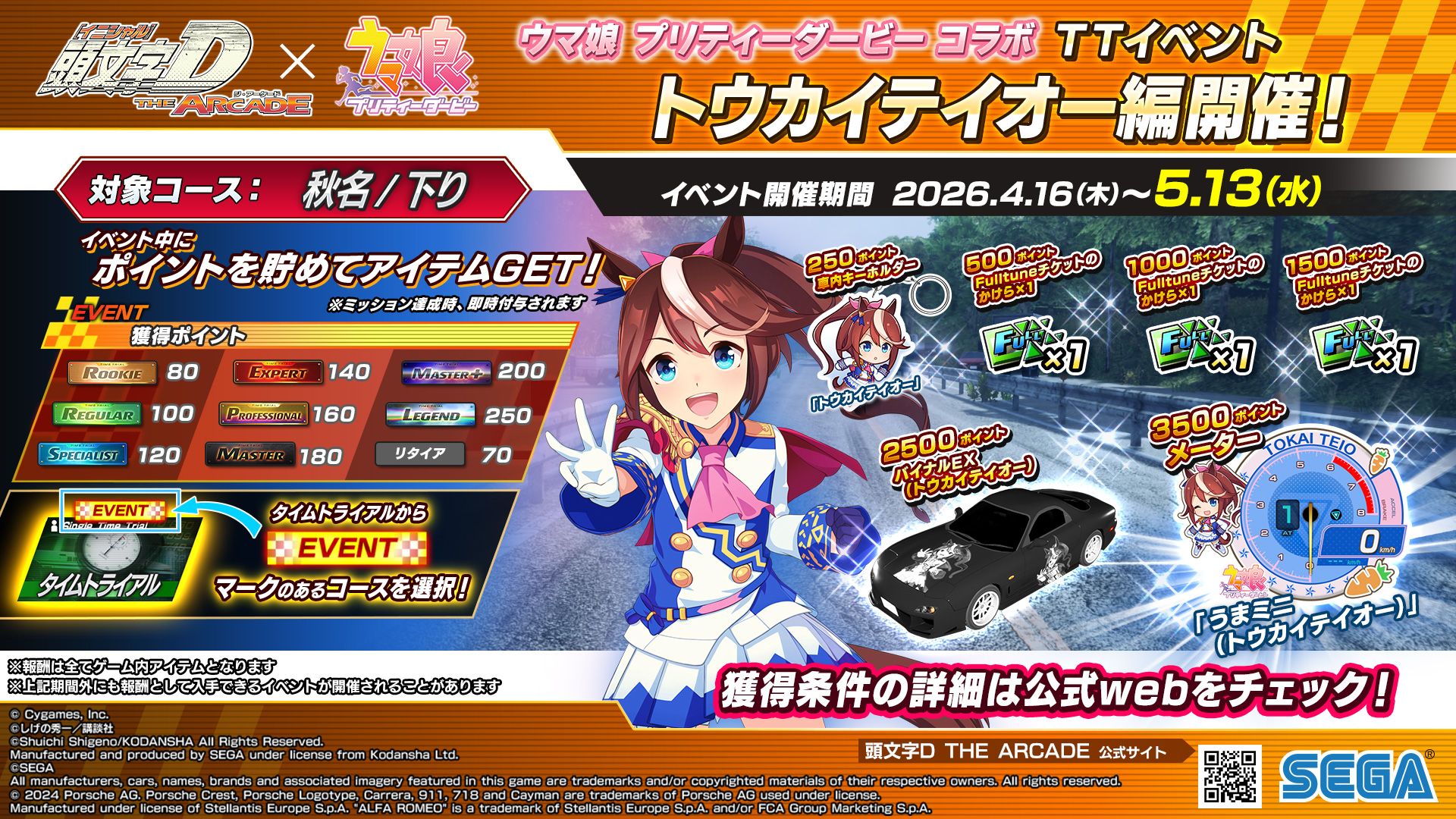 タイム評価に応じてポイントを獲得することができ、累計ポイントが指定の値に到達するとアイテムが付与されます。