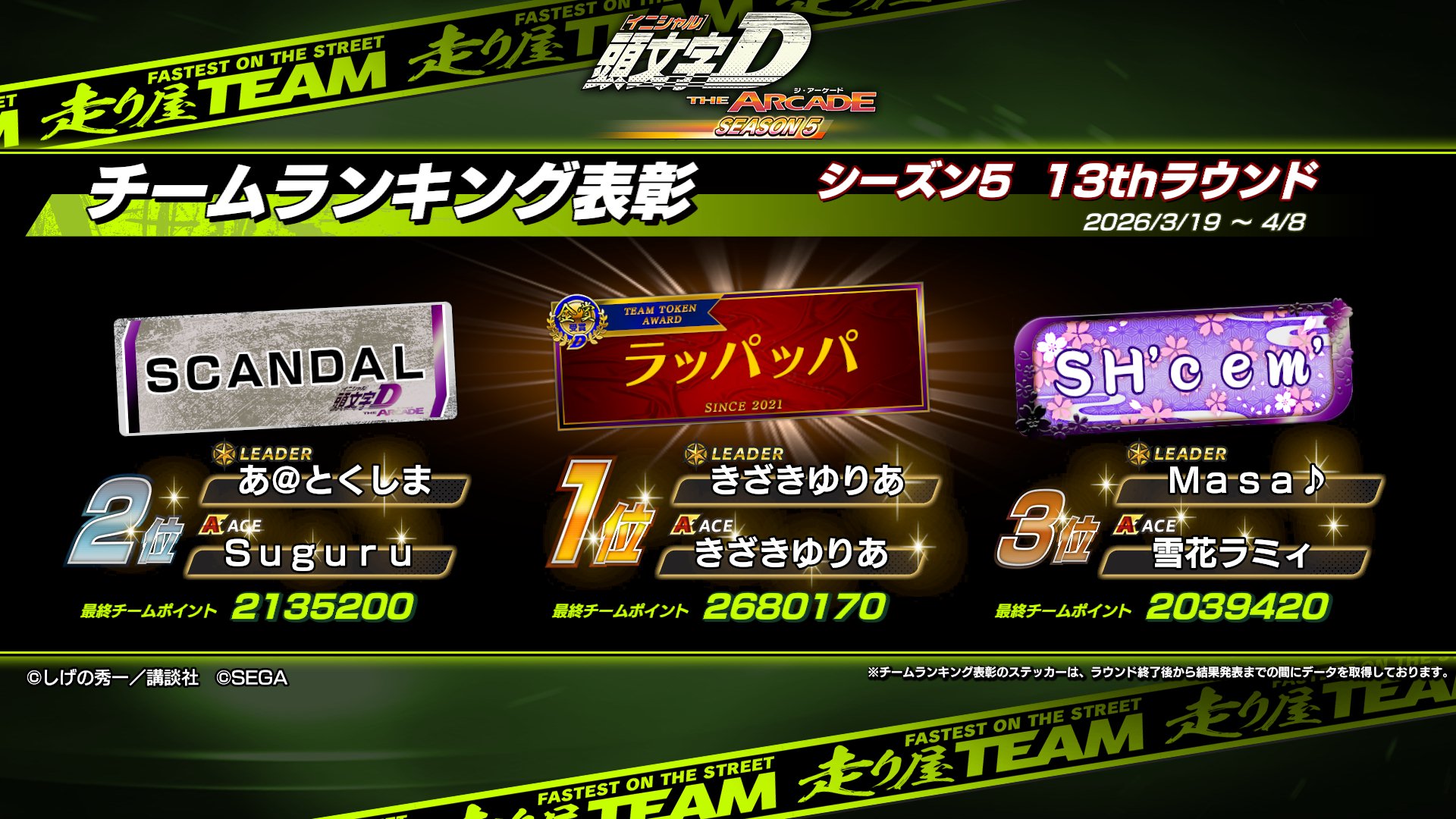 シーズン5 13thラウンド チーム表彰